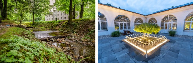 Prostory obklopující hlavní budovu léčebny včetně nádherného parku vybízejí k aktivnímu odpočinku